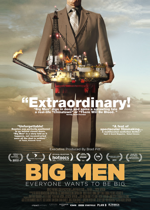 Big Men | Release Year: 2013 Runtime: Genre: Documentary × SynopsisThe film's central story follows a small group of American explorers at Dallas-based oil company Kosmos Energy. DirectorRachel BoyntonWriterRachel BoyntonLead CastHerself (Narrator)